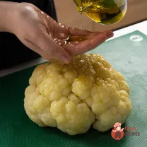 Викласти качан на застелений пергаментом деко стеблом вниз (його можна підрізати, щоб качан стійко стояв на деку). Запікати капусту на середньому рівні розігрітої до 220 градусів духовки, поки вона не стане м'якою, як олія, усередині, а зовні не утворюється рум'яна скоринка, близько 40 хвилин.