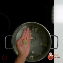 У воді розчинити сіль, додати спеції, лавровий лист і нарізаний тонкими скибочками часник. Довести до кипіння, а потім дати соленаду повністю охолонути.