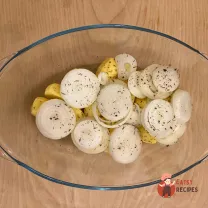 Замаринувати ескалопи в соусі під час приготування інших інгредієнтів. За бажанням можна залишити на 1-2 години.