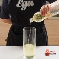 Рослинну олію перелити у високу склянку і охолодити в холодильнику або морозилці.
