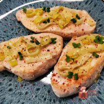 Викласти готове філе на блюдо, зверху викласти обсмажену цибулю.