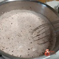 Вилити суміш крохмалю та вершків тонким цівком у каструлю.