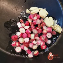 Через пару хвилин додати спеції та перемішати. Готувати ще близько 7 хвилин|мінути|, періодично помішуючи.