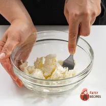 Змішати йогурт з|із| 1 столовою ложкою оливкової олії, фетою і цедрою лимона. Небагато цедри відкласти на прикрасу.