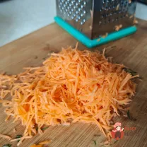 До кабачка додати моркву та другу половину кропу. Перемішати.