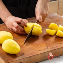 У розім'яту картоплю видавити вміст часникових зубчиків і розмішати. Посолити і поперчити до смаку.