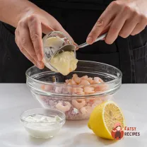 Додати сметану, майонез, лимонний сік і знову перемішати. Посолити і поперчити до смаку.