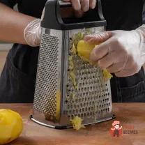 Очистити картоплю і натерти її на дрібній тертці. На ній же натерти цибулю.