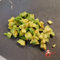 Огірок очистити, нарізувати|нарізати| маленькими кубиками і злегка підсолити.