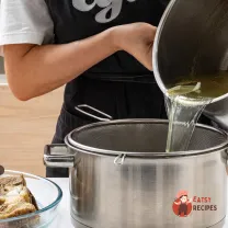 Готовий бульйон процідити через сито чи марлю і повернути у каструлю. Овочі та спеції з бульйону викинути, а м'ясу дати охолонути.