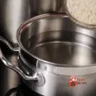 Зварити бульйон із яловичини, додати картоплю, довести до кипіння, покласти перловку, варити на слабкому вогні 7-8 хвилин.