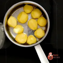 Відварити до готовності картоплю, злити воду. Потовкти зі шматком вершкового масла, а потім протерти пюре через сито.