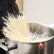 Перекласти локшину у крижану воду, щоб охолодити її. Потім злити воду і додати трохи олії, щоб локшина не злиплася.