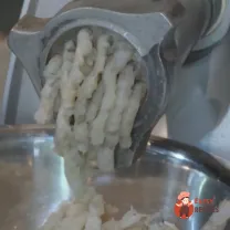 Крупно нарізати другу частину креветок і додати фарш. Ретельно перемішати.
