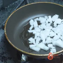 150 г цибулі очистити і нарізати дрібним кубиком.