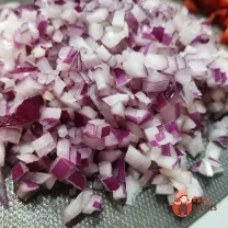 Змішати в мисці перець, сир та обсмажену цибулю.