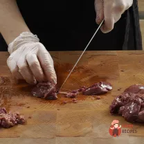 Зачистити печінку. Викласти її на паперовий рушник, щоб вона віддала вологу.