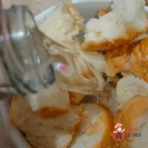 Далі віджати хліб і так само розкришити в миску з фаршем та фетою.