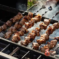 Смажте барбекю на гарячому вугіллях з усіх боків до готовності. Щоб перевірити готовність, розріжте шматок м’яса - прозорий сік повинен текти з нього.