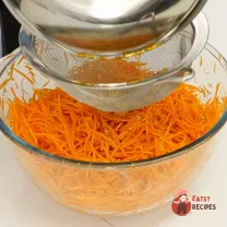 Натерти морквину на спеціальній тертці або звичайній дрібній тертці.