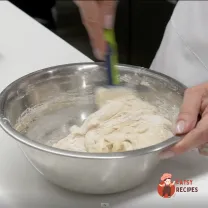 З'єднати суху суміш із яйцями та цукром. Робити це в три-чотири етапи, всипаючи потроху і постійно помішуючи лопаткою. Заважати до тих пір, поки маса не стане однорідною. Лопатку обертати за годинниковою стрілкою, а миску проти.
