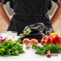 Розрізати баклажани вздовж навпіл і вискребти м'якоть ложкою. Якщо баклажани великі і в них багато насіння, вилучити їх і викинути.