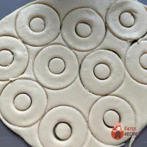 Розкачати тісто завтовшки 5-6 мм і вирізати за допомогою форми різного розміру кільця.