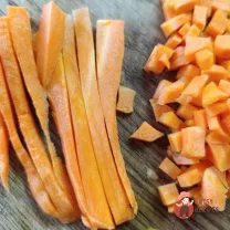 Смажте до прозорого стану цибулі та напівзавантаження моркви.