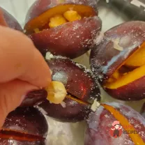 Це чудова закуска до вина чи навіть гарнір до м'яса. Сливи мають бути м'ясисті, а кісточка відходити легко. Горіхи можна взяти будь-які. Сир бри або камамбер - будь-який сир із благородною білою пліснявою. Сіль і цукор класти щонайменше, щоб зберегти натуральний смак сливи.