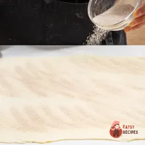 Акуратно перевернути тісто, присипати цукровою сумішшю, що залишилася, і так само прокатати качалкою.