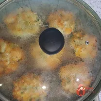 Котлети перевернути на інший бік та смажити до готовності під закритою кришкою.