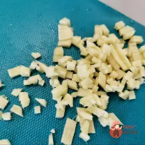 Нарізати цибулю і об'єднати її з імбиром у киплячому маслі на сковороді і обсмажити до легкого рум'янцю.