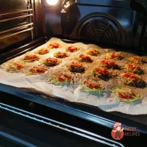 Додати по неповній чайній ложці томатної суміші на кожну купку сиру.