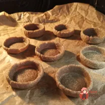 На дно чарки накласти кухлі з тіста, сформувавши майбутні тарталетки.