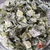 Зелень порубати і поєднати з огірками в глибокій мисці.