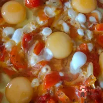 Ця страва проста і ситна. Подати можна на сніданок чи вечерю. Додавати спеції можна на ваш смак, також замість сушеного цілком можна додати свіжий часник. Консистенцію страви можна регулювати, зробивши її соковитішим, для цього потрібно взяти більше помідорів.