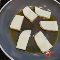 Сир нарізати слайсами завтовшки близько 1-1,5 см.