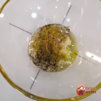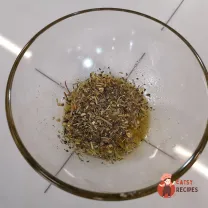Змішати в глибокій мисці оливкову (2 ст.л.) та гірчичну олію.